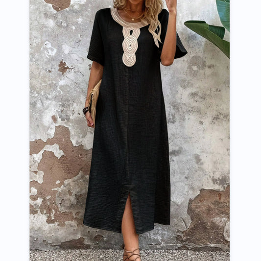 [S-3XL] Rochie nouă de vară, brodata, cu gât rotund, din bumbac și in, la modă și elegantă, confortabilă și respirabilă