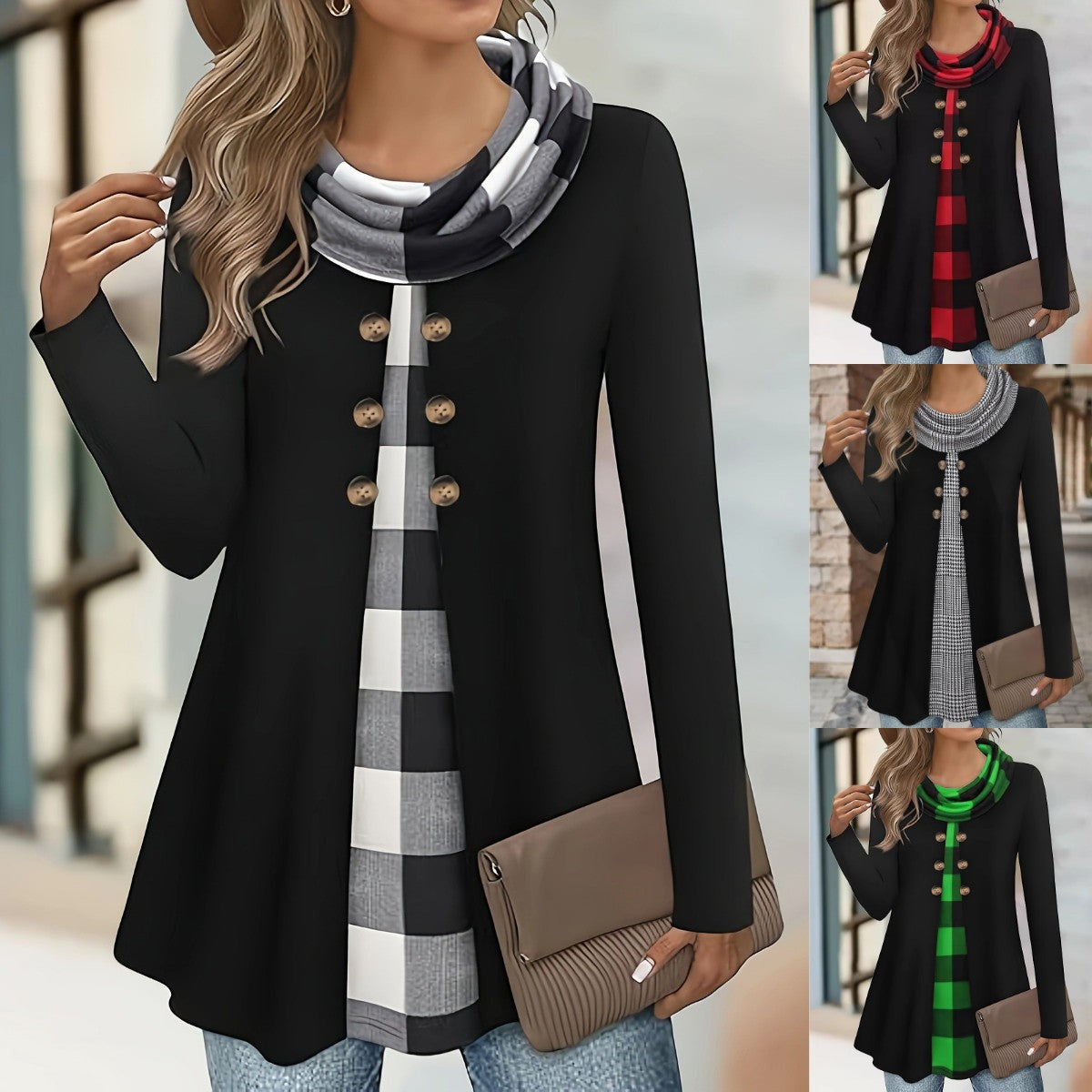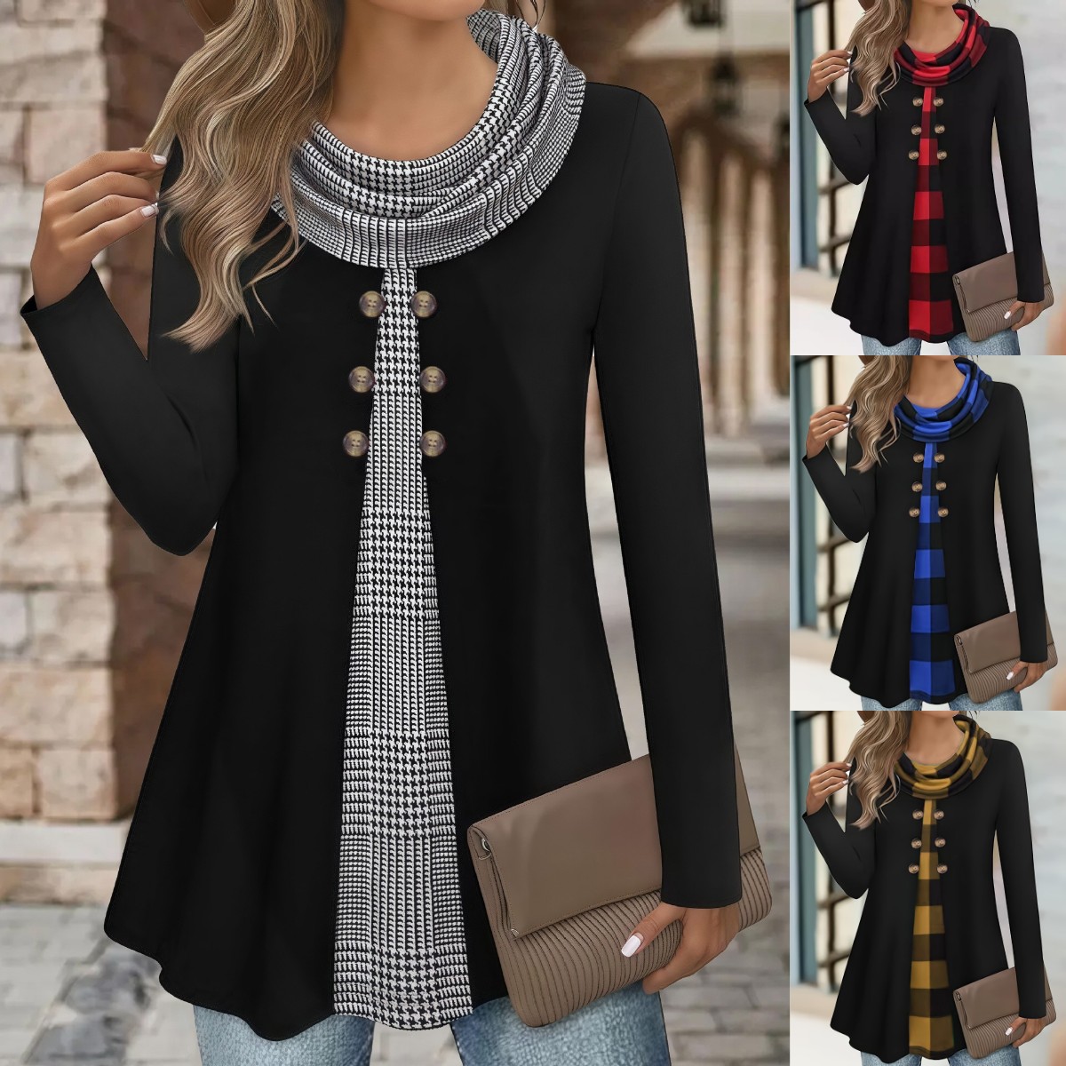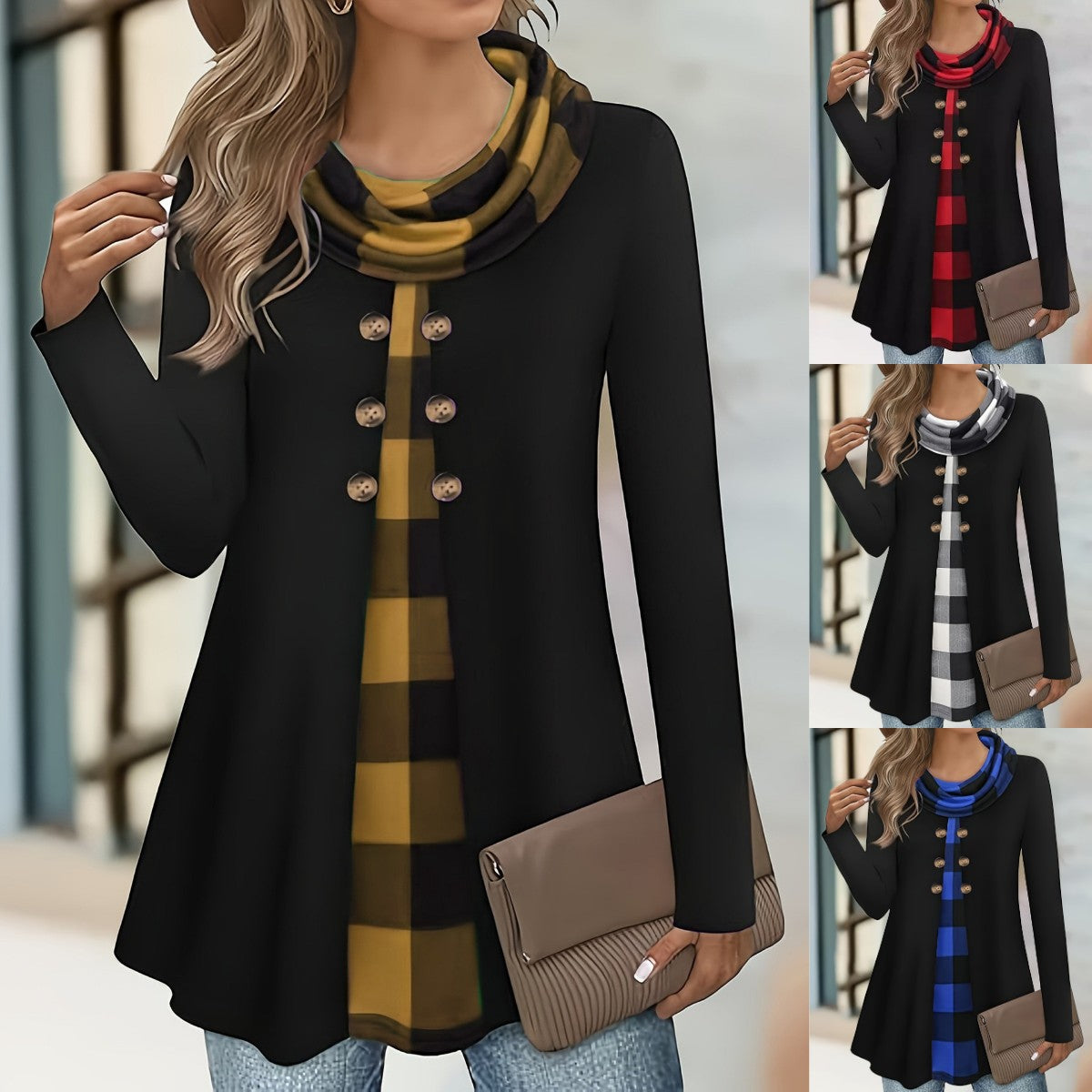 💥【S-5XL】Ženski udobni dvodijelni set majice s visokim ovratnikom i imitacijom gumba